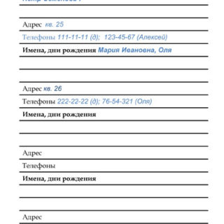Зачем в домашнем органайзере список родственников, с которыми общается семья? Ну, во-первых, это своеобразная адресно-телефонная книга, собранная по тематическому принципу, а не огромный алфавитный справочник, где не мудрено запутаться. Во-вторых, родню принято поздравлять с днями рождения, и эти дни рождения тоже нужно где-то записать – почему бы не под одной...