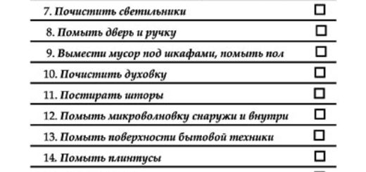 - Алгоритм еженедельной косметической уборки всего жилища.